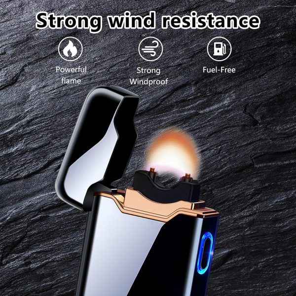 Windproof Electric Lighter – Large Plasma Flame Arc Lighter, Rechargeable USB, Battery Indicator for Candle (Black)